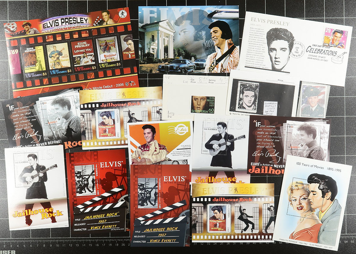 Elvis Topical Collector Hoard. This collector was still an active buyer of everything Elvis up until a few years ago, with most of the recent purchases being compiled in this small box. As with many collections which delve into the more modern material, the more recent material is often the most expensive. This small box is packed with "new issues" from about 2010 onwards and a bit of ephemera (most with their original price tags still on them). Overall condition is excellent. The original cost of this material was over $1000.00. Estimate =