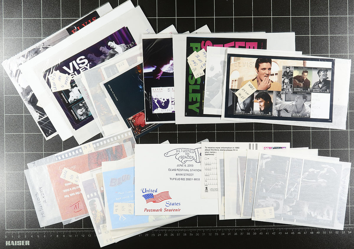 Elvis Topical Collector Hoard. This collector was still an active buyer of everything Elvis up until a few years ago, with most of the recent purchases being compiled in this small box. As with many collections which delve into the more modern material, the more recent material is often the most expensive. This small box is packed with "new issues" from about 2010 onwards and a bit of ephemera (most with their original price tags still on them). Overall condition is excellent. The original cost of this material was over $1000.00. Estimate =