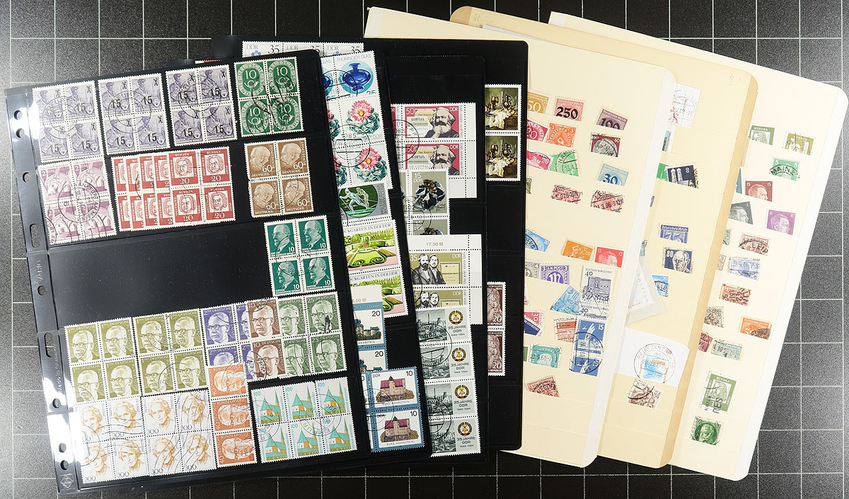 Two binder intermingled accumulation. The German material starts in the inflationary period and then jumps forward to the post-war era, gaining strength in the 1960’s with a mix of mint, used and CTO. Includes some souvenir sheets (adding in a few "Berlin" issues here) and multiples of DDR, including #2071-2085 in full CTO sheets of 100. The second binder is almost exclusively DDR back to about 1950, and resembles more of a collection, all on Vario-brand stocksheets, with multiples and souvenir sheets in this group as well. Throughout there are many items in the $5.00-$20.00 range. Overall the condition is quite good, but expect there to be some duplication. A ton of stamps here! Estimate =