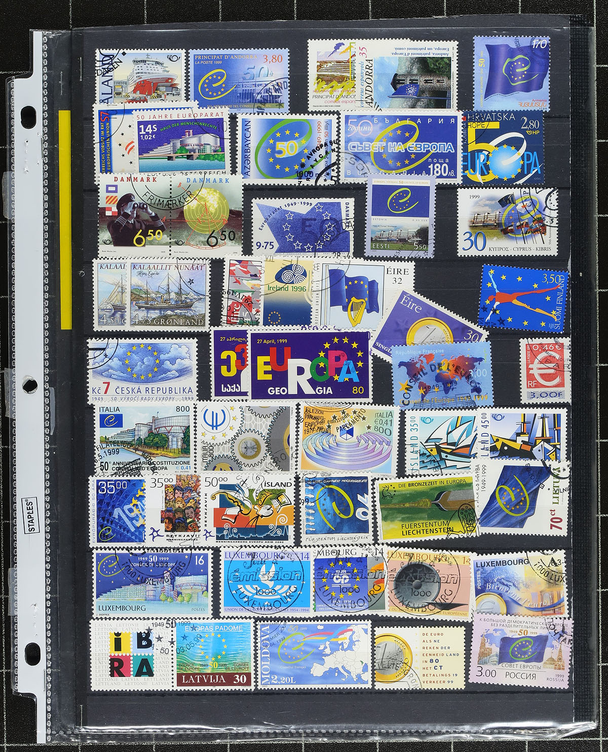 Europa/CEPT mint and used issues, nicely displayed on black stockpages. Starting with complete mint Never Hinged issues from 1975 (including a large Monaco souvenir sheet), followed by the 1991 space exploration and 1992 Christopher Columbus issues (both include several souvenir sheets). The final three pages cover an assortment of issues from 1980-1999, with the individual stamps being nicely used, but with three mint souvenir sheets. Overall condition is beautiful. Owner’s older 2018 Scott US$610.75 =