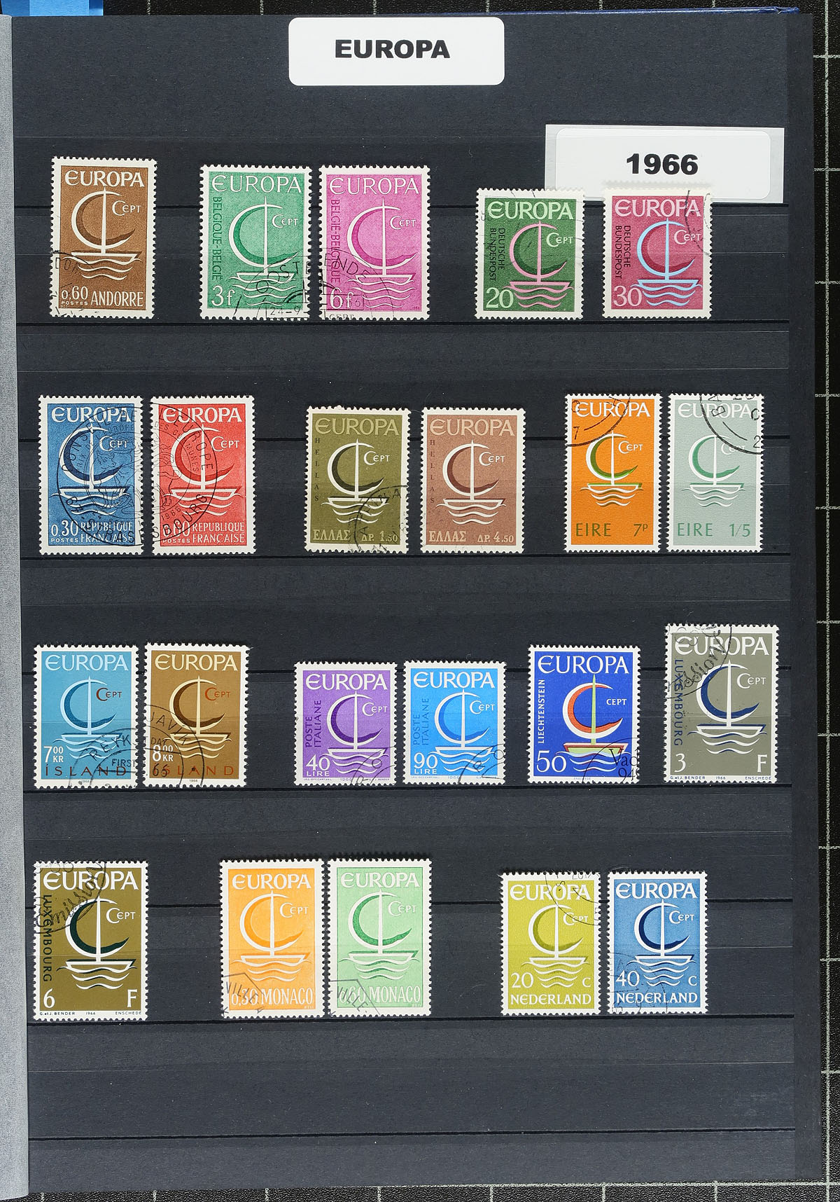 Europa Topicals. Extensive collection of used or P.O. cancelled sets of the popular Europa issues from 1956 to 1983, filling a Lindner 30 double-sided page stockbook and spilling into another. These issues provide a welcome challenge as they are not all Common Designs, nor are they listed as year sets beyond 1973 in Scott. The previous owner valued issues up to 1974 at US$587.35 by the 2021 Scott catalogue, the stock books alone would cost you about $100.00 new! Estimate =