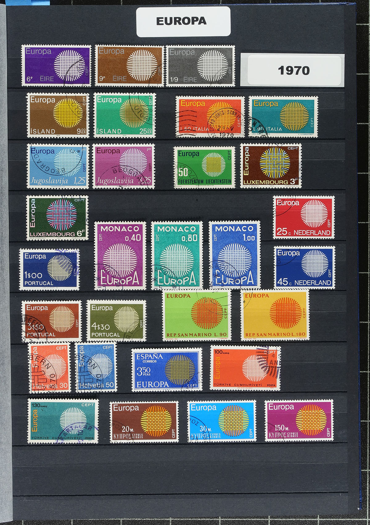Europa Topicals. Extensive collection of used or P.O. cancelled sets of the popular Europa issues from 1956 to 1983, filling a Lindner 30 double-sided page stockbook and spilling into another. These issues provide a welcome challenge as they are not all Common Designs, nor are they listed as year sets beyond 1973 in Scott. The previous owner valued issues up to 1974 at US$587.35 by the 2021 Scott catalogue, the stock books alone would cost you about $100.00 new! Estimate =