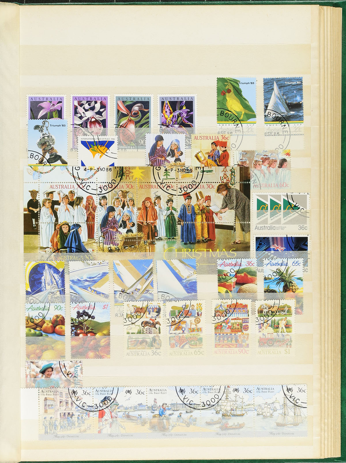 Mint And used Collection in Stockbook. Mint and used collection of 882 (mint) and 863 (used) neatly organized stamps, consisting of mostly parallel mint and used examples of the same stamps. The lot contains pre-decimal and decimal currency issues from both Australia and Australian Antarctic Territory. While there is probably a decent total catalogue value in this lot, it has been conservatively valued for the useable decimal currency postage at face value only. Total useable face value AUD$282.83 = $257.50 CDN. Estimate =