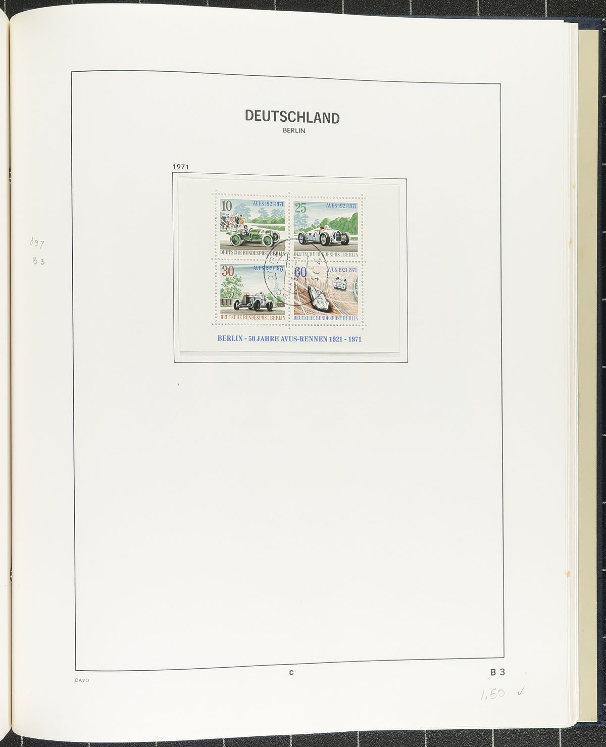 Mint and used modern collection mounted in Davo Album. Includes 565 Germany + 20 souvenir sheets, 1975-1990 issues, mint are mostly NH in acetate mounts; and 610 Berlin + 7 souvenir sheets, 1948-1990 issues. Perhaps a 40-60 split between mint NH and used. Some previously removed but lots of useful remain. A few Back of the Book not counted. Owner used older catalogue. Owner's 2013 Scott US$1,125.00 =