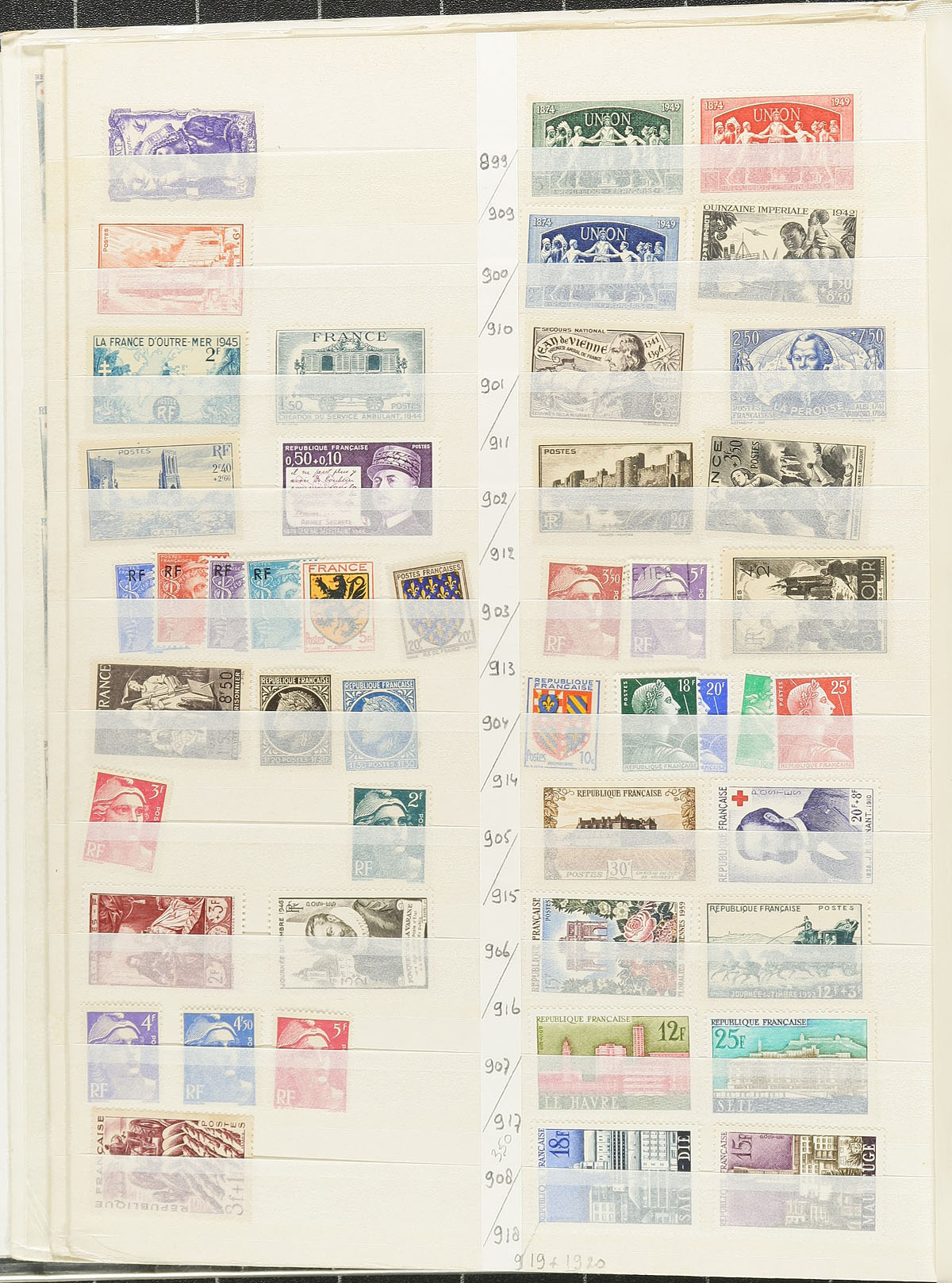 Mint Dealer Stock offering. A stock of mint (about 95% Never Hinged) from primarily the 1942-1985 period including many semi-postals and other "back of the book", with duplication. Housed in a blue European stockbook, there are single values to $2-3 catalogue, with sets from $3-$5 throughout (even a couple sets in the $30 range!). A total of 2050+ stamps largely unchecked, with potential varieties to be found by the knowledgeable eye. Owner estimates that the catalogue value would exceed US$1200.00. Estimate =