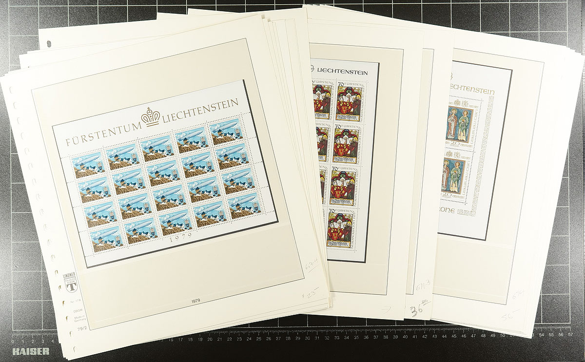 Comprehensive and clean, all Very Fine mint Never Hinged collection of 1979 to 1980 issues, all in 65 full panes of 20, 16 or 4 and all in full sets. Valued as single stamps but the panes are worth a premium in both Michel and Zumstein catalogues. Significant total face value (in Swiss Francs). All housed on top-of-the-line hingeless Lindner pages, in a padded green binder. 2024 Scott US$761.85 =