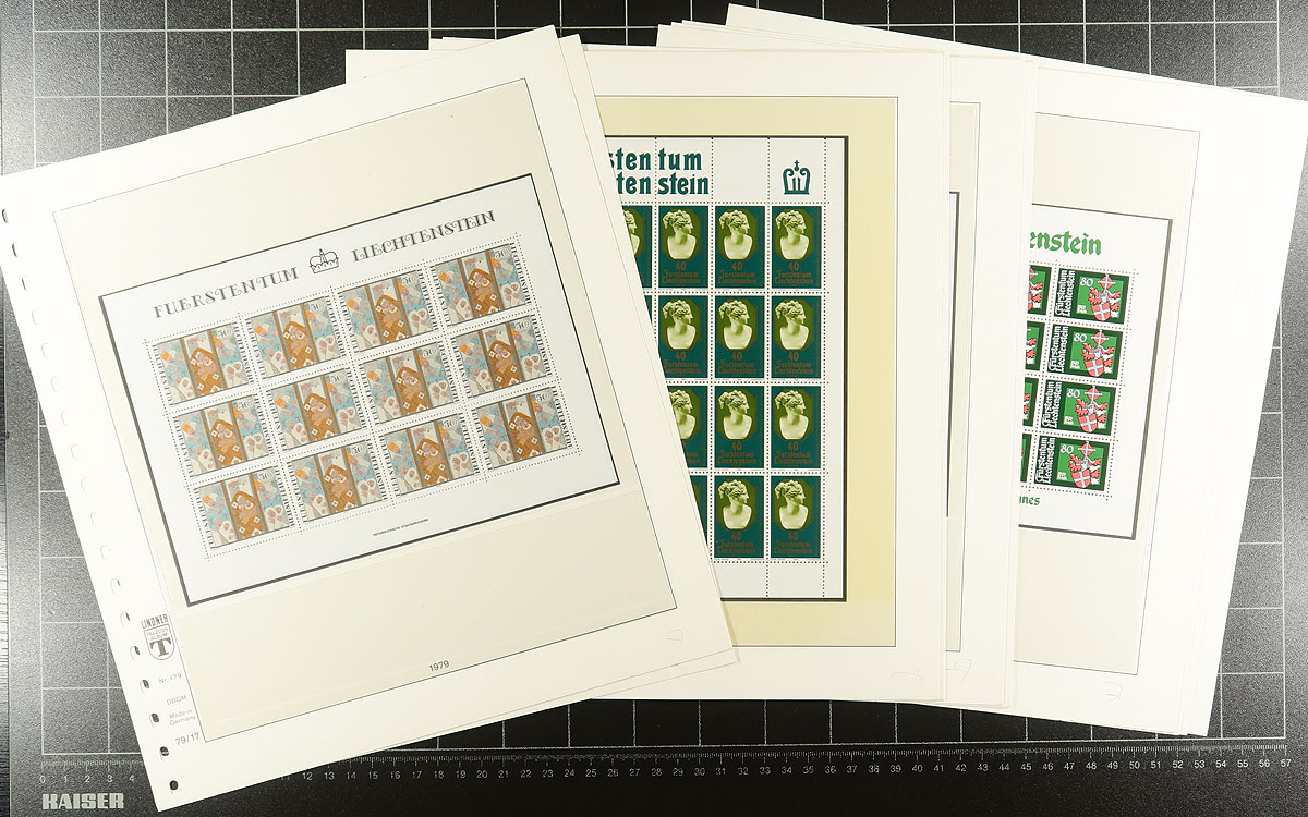 Comprehensive and clean, all Very Fine mint Never Hinged collection of 1979 to 1980 issues, all in 65 full panes of 20, 16 or 4 and all in full sets. Valued as single stamps but the panes are worth a premium in both Michel and Zumstein catalogues. Significant total face value (in Swiss Francs). All housed on top-of-the-line hingeless Lindner pages, in a padded green binder. 2024 Scott US$761.85 =