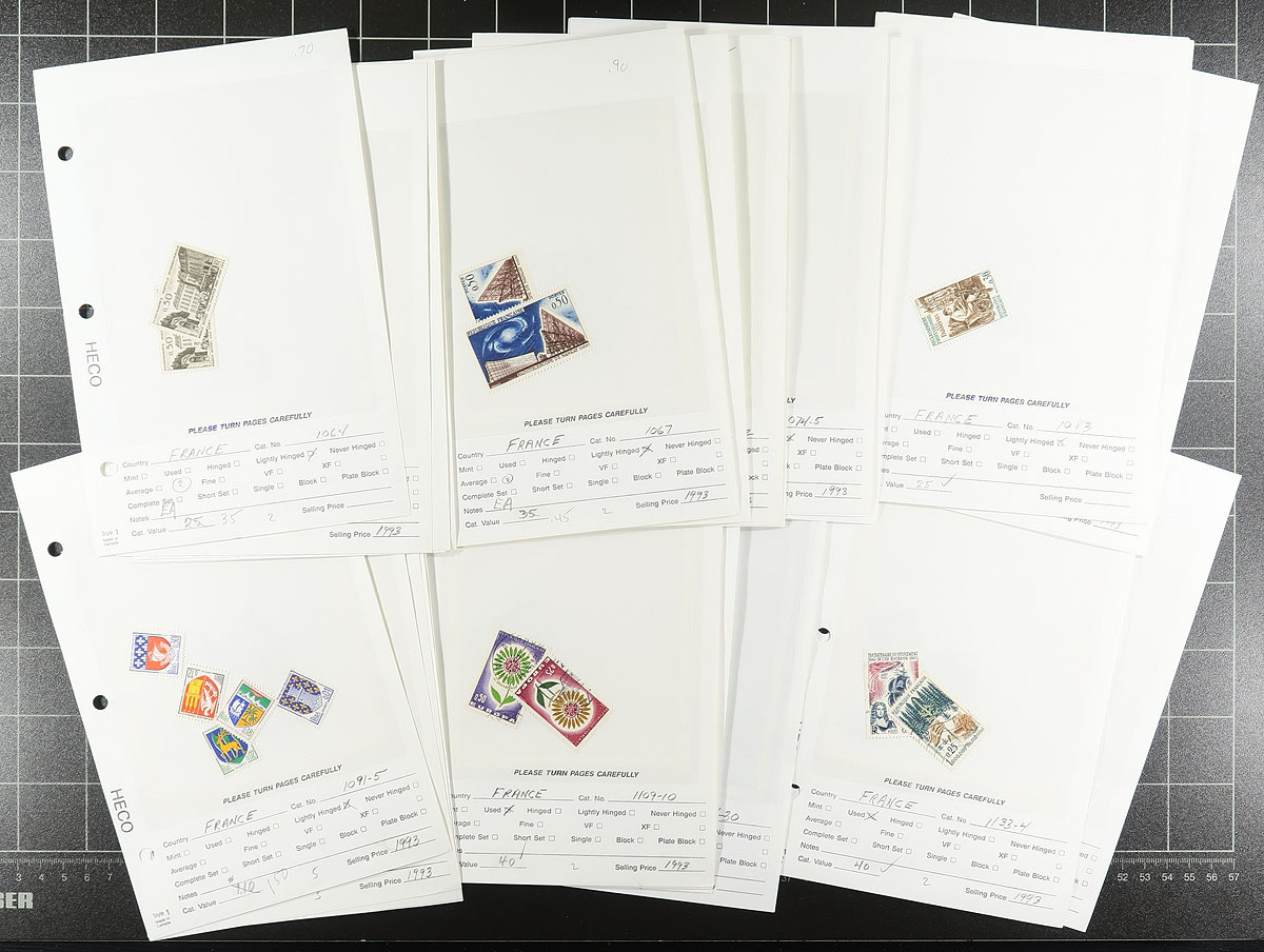 Stock/Selection in 4 Binders. Stock of France mint and used stamps in four small format 3-ring binders covering the period from 1933 to 1979, Scott #290 to #1681. Over 800 stamps in total. Estimate =