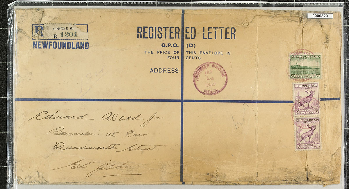Registered Postal Stationery "Formula" Envelopes. An interesting lot of 5x "oversize" Newfoundland postal stationery registered covers, commonly referred to as "Formula Registered Envelopes", as stamps needed to be added to each before posting. Webb catalogue numbers RE-1, RE-2 (x2) and RE-3 and RE-4, all used. These are tough to find, especially the "oversize" versions. Estimate =