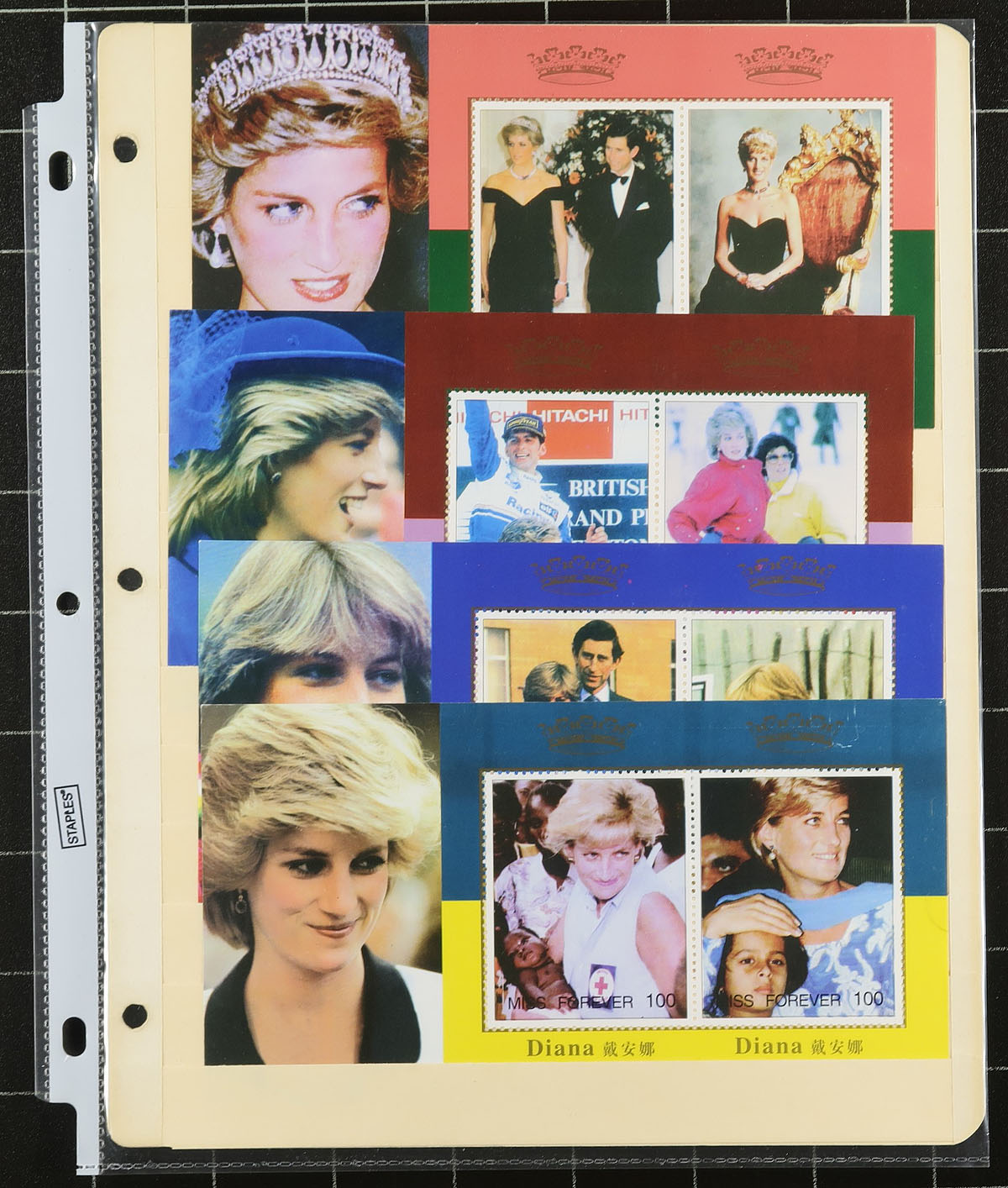 Princes Diana Topical Collection. Mint Never Hinged collection of mostly souvenir sheets honouring Princess Diana. Consists of 6 stamps and 41 souvenir sheets although ten of the souvenir sheets are "Forever sheets" non-philatelic with little or no value (the consignor valued them at $20.00 and this may be the market value). Owners older 2020 Scott US$332.15 =