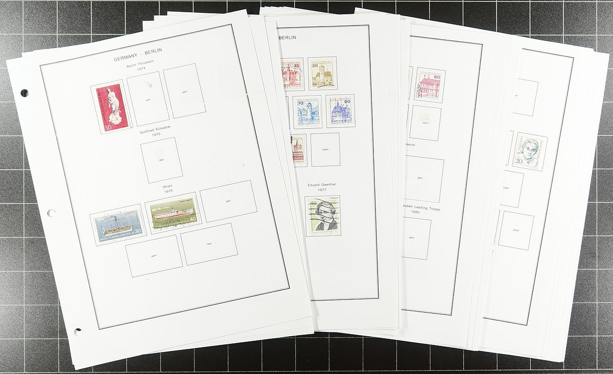 "Back of the Book" (no Semi-Postals). Collection of 767 different stamps, all mounted on nicely designed computer-generated pages. The material consists of airmails (39 stamps, $110.00 cat), officials (89 stamps, $118.65 cat), franchise stamps (11 stamps, $15.65 cat), newspaper stamps (2 stamps, $5.85 cat), Allied M.G. (31 stamps, $99.25 cat), French occupation (90 stamps, $168.85 cat), Soviet occupation (45 stamps, $35.50 cat), Berlin (354 stamps $595.20 cat), Russian occupation (83 stamps, $79.15 cat) and Offices in China (23 stamps, $43.45 cat). A good start to these more obscure issues. Only sound stamps valued. Owner's 2017 Scott US$1,271.55 =