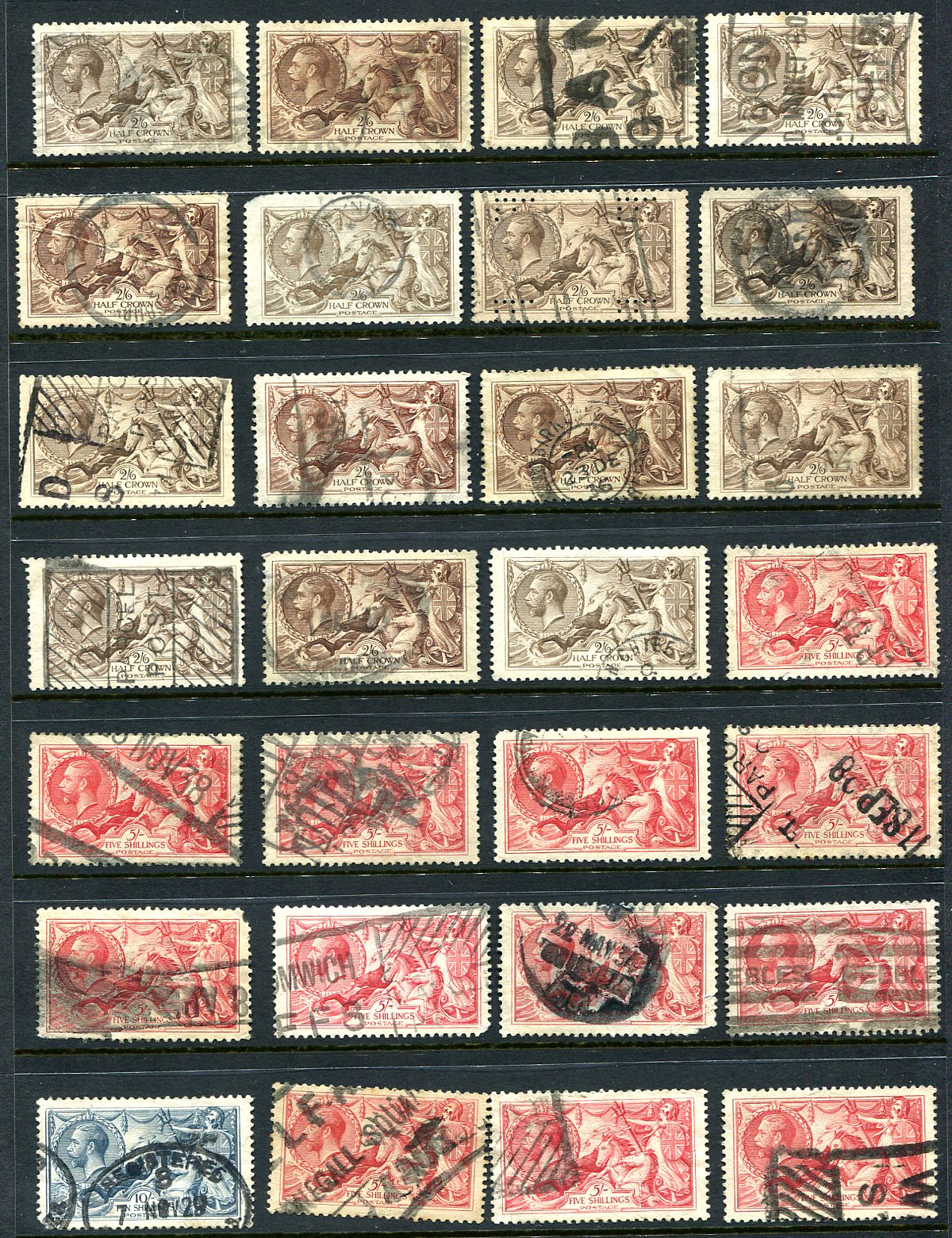 Seahorse holding of 28 GeoV used stamps, neatly arranged on a single Hagner brand stockpage. Includes (by Scott number) #173 x10, #174 x6, #175 x1, #222 x5 and #223 x6. We noted several better postmarks, but also some faults (as often found on the usually "parcel applied" issues). Owner's stated catalogue value over $5000.00. Estimate =