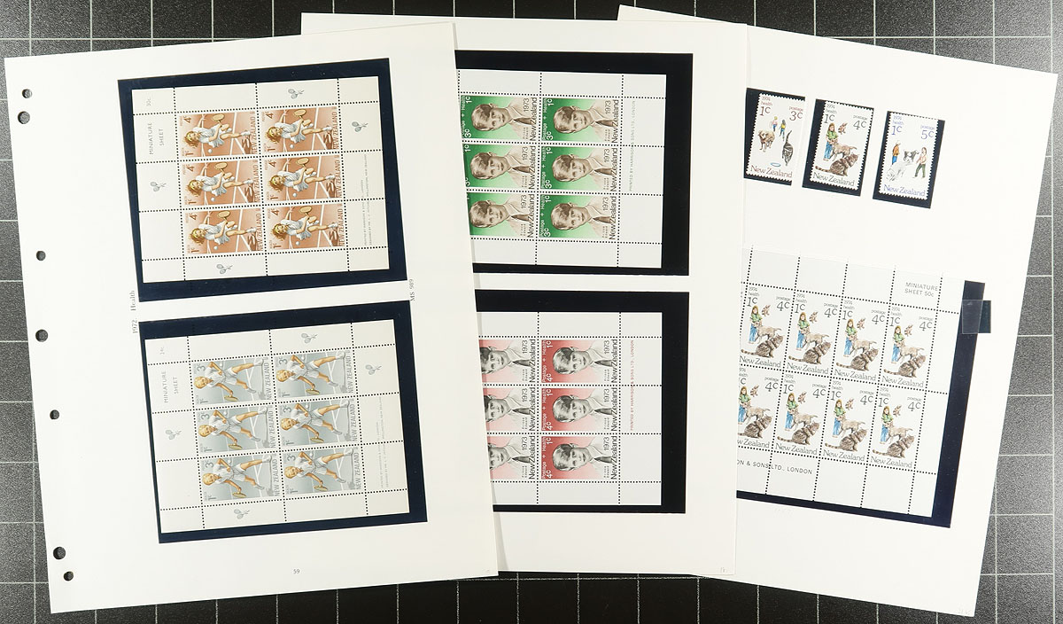 VF mint Never Hinged collection of semi-postal "Health" issues from 1957 to 1976 inclusive, with all the miniature sheets and most of the sets of individual stamps, mounted on Stanley Gibbons pages in a 22-ring New Zealand album. Owner's 2020 Scott US$430.45 =
