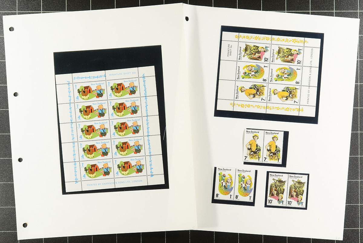 VF mint Never Hinged collection of semi-postal "Health" issues from 1957 to 1976 inclusive, with all the miniature sheets and most of the sets of individual stamps, mounted on Stanley Gibbons pages in a 22-ring New Zealand album. Owner's 2020 Scott US$430.45 =