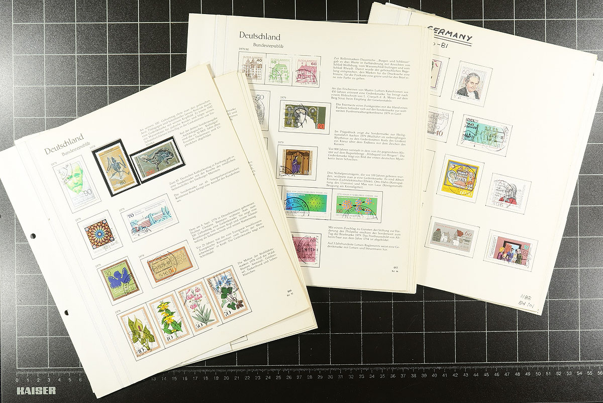 Two-volume collection of 1948 to 1988 issues, the majority used and often scarcer thus. An approachable start to a post-war Bundesrepublik collection on double linen-hinged pages in vintage albums. Estimate =