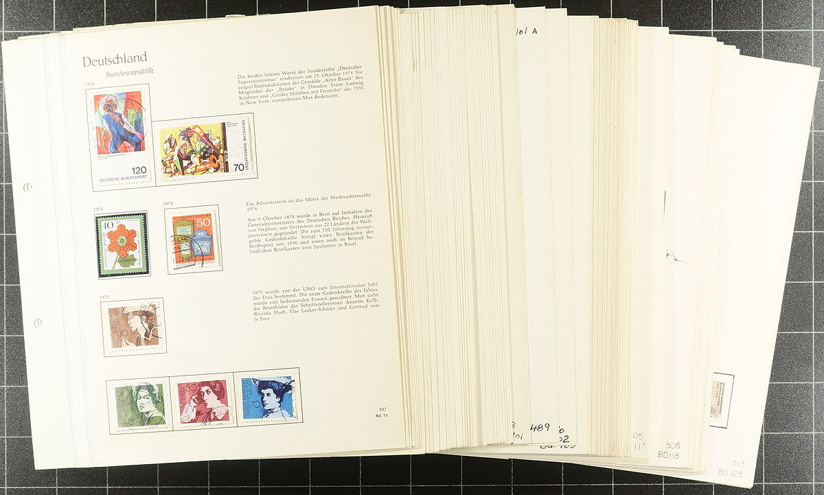 Two-volume collection of 1948 to 1988 issues, the majority used and often scarcer thus. An approachable start to a post-war Bundesrepublik collection on double linen-hinged pages in vintage albums. Estimate =