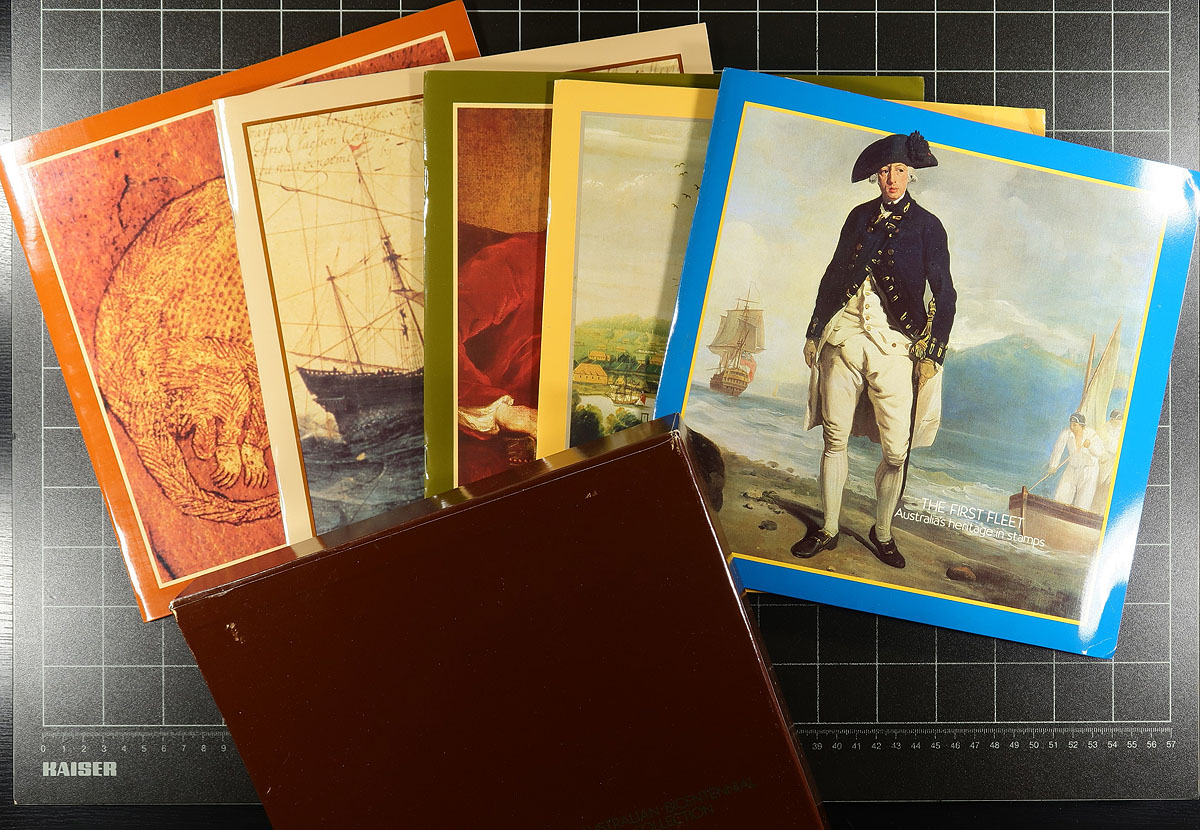Mint and Used Group. Combination of two final consignment lots consisting of Australian Post Office mint products, covers and cards plus a quantity of used New Zealand on paper (mostly late 20th century period). The bulk of the lot value is in the Australia which includes the "Links" set of booklets, the "Colonial Collection" book, the "Living Together" folder, the "Australian Impressionists" book, the "ANZAC Tradition" book, the "Antarctica" book, the"1788-1988 Australian Bicentennial Collection" plus six additional smaller collections. Pretty hefty total price tag if valued by Seven Seas or another specialized Australian catalogue. Estimate =