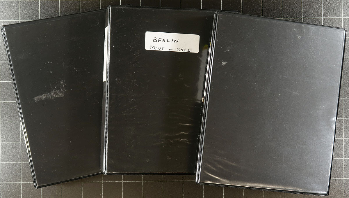 Dealer's stock in identified and valued "102" cards housed in three small 3-ring binders, consisting of Germany #4//2163 (129 stamps, Scott US$968.05), Berlin #9N2//9NB285 (501 stamps, Scott US$1333.75) and Austria #19//2040 plus "back of the book" (124 stamps, Scott US$394.05). A very useful "show-ready" selection of 1872 to 2006 issues with some duplication. The previous owner's retail prices are also indicated though the catalogue values are somewhat out of date. Owner's Scott US$2695.85 ($3639.40 CDN). Estimate =