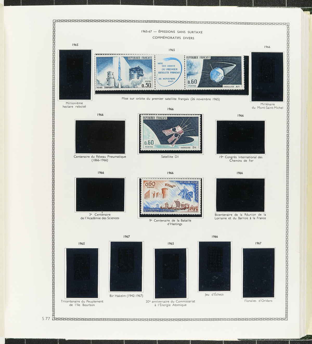 Collection in "Timbre Post" Album. Meaty remaindered mint and used collection of 570 stamps, all housed in a fat "Timbre Post" Album. The album is arranged to start with definitives, followed by commemorative subject categories (monuments, celebrities, events), then "Back of the Book" material. The collection itself starts with early 1849 imperfs and works its way up to the mid-1960s period (with a section of pages for United Nations issues). Two small glassines packed with used stamps also included. Valued for the catalogue value of the stamps only. Owner's 2018 Scott US$1,120.00 ($1512.00 CDN). Estimate =