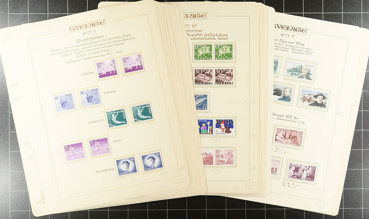 All mint, almost all VF mint Never Hinged 1967 to 1973 period collection of 735 stamps, 25 booklet panes and 1 souvenir sheet, all neatly laid out in a nicely designed album of Swedish manufacture. A very high quality offering. Owner's older 2017 Scott US $628.80 =