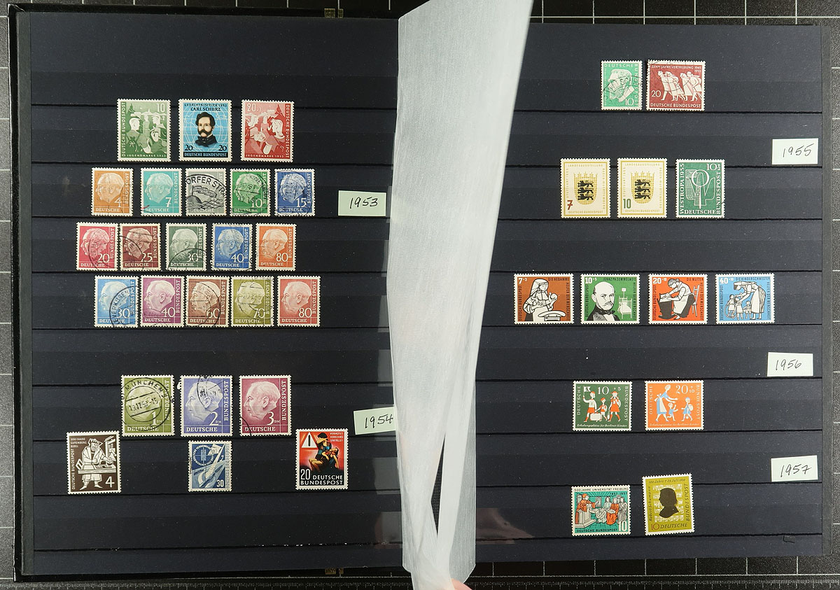 Balance of collection in 3 stockbooks, 2 albums and 1 book, consisting of a meaty mix of post-war occupation issues and locals from 1945-1948, mixed mint and used West Germany from 1949 to 1983, useful accumulation of used 1994-2014 issues in 2 Lindner albums, and a 1980 Deutschen Bundespost annual collection. Estimate =