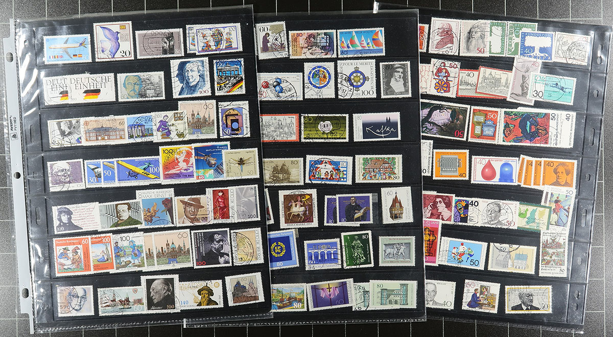Collection of used Germany, 1880's-2016, containing a few thousand stamps on roughly 30 album or stock pages. The collection contains representation from Germany, DDR, and Berlin issues, along with selections of semi-postals, early issues, and a few modern semi-postals. A spot check indicated singles, sets, and partial sets cataloguing $10 and up each, including #s Germany 665-669 (c.v. $155 total), leaving better finds to the dedicated collector. Owner's 2019 Scott catalogue value for the lot totals US$2,234.00 ($3015.20 CDN). Duplication up to 2 for some issues, a few faults to be expected, overall fine to very fine. Estimate =