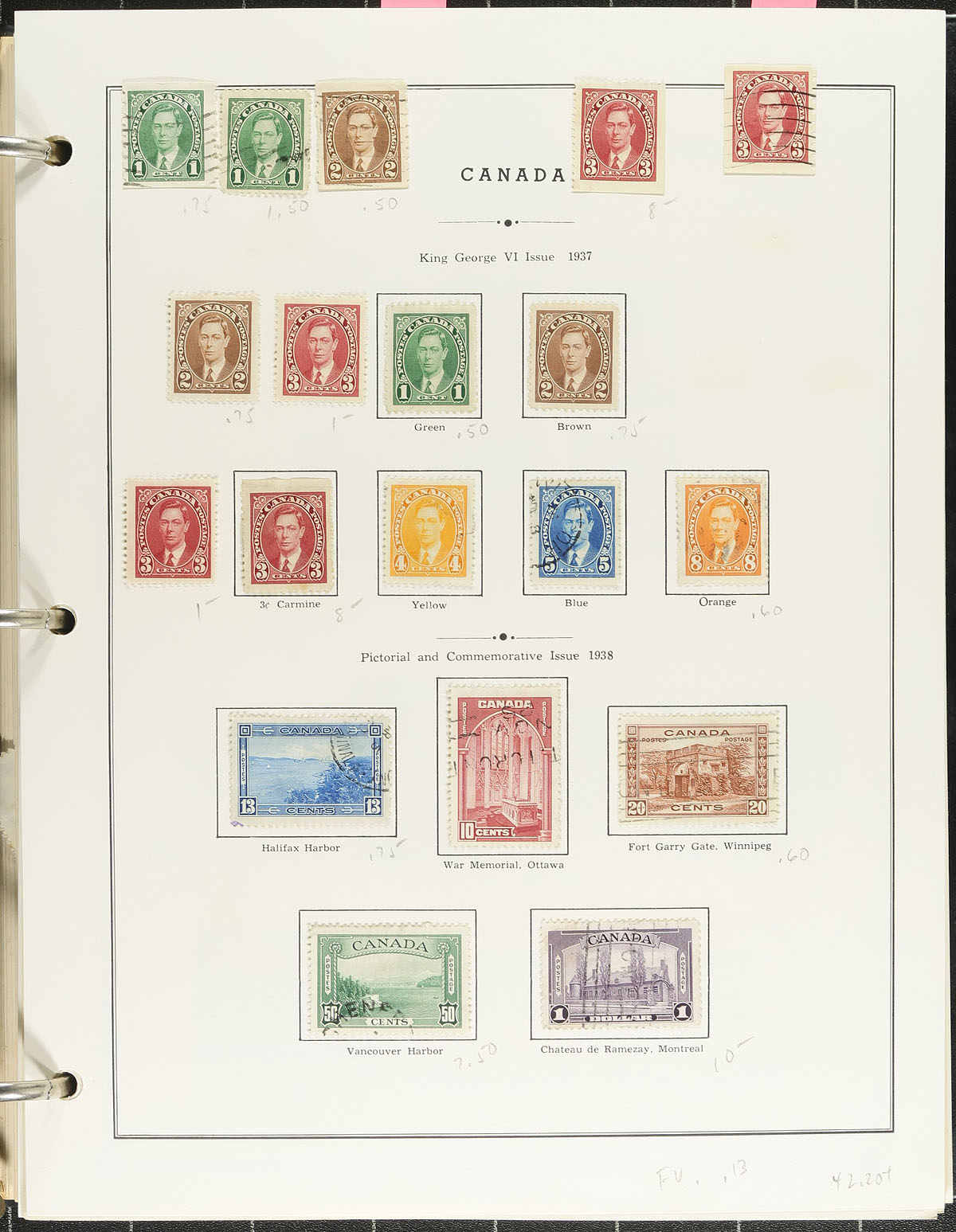 Starter collection of primarily used Canada, 1870's-1978, containing many hundreds of stamps in Minkus and Jarrett album pages in an album. The collection begins with a small selection of used low denomination Victorian issues, and partial sets of Edwards, Quebecs, Admirals, onward, with full sets of Pictorial, War, and Peace issues. The collection continues with a mixture of mint and used stamps, including back of the book issues, with pages up to 1978 (includes pages for BNA stamps), noting a few stamps cataloguing in the $5 to $10 range. A nice start to begin a Canada collection. Estimate =