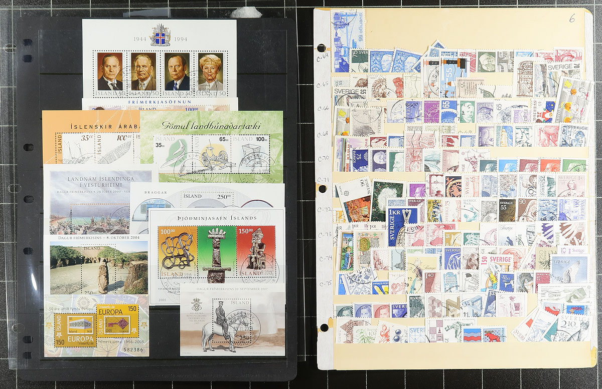 Scandinavia. Accumulation of used Scandinavia, 1870's-2011, containing a few thousand stamps, including a few souvenir sheets, in over 30 stock or album pages. An overview of the lot indicated good representation from Finland, Sweden, and Norway, along with some Iceland, Denmark and Faroe Islands, not singles, sets, and partial sets cataloguing $10 and up, noting Finland #75 (c.v. $45), leaving better finds to the dedicated collectors. Owner's 2012 Scott catalogue value for the lot totals US$1,728.00 ($2332.80 CDN). A nice lot from these popular collecting countries, overall fine to very fine. Estimate =