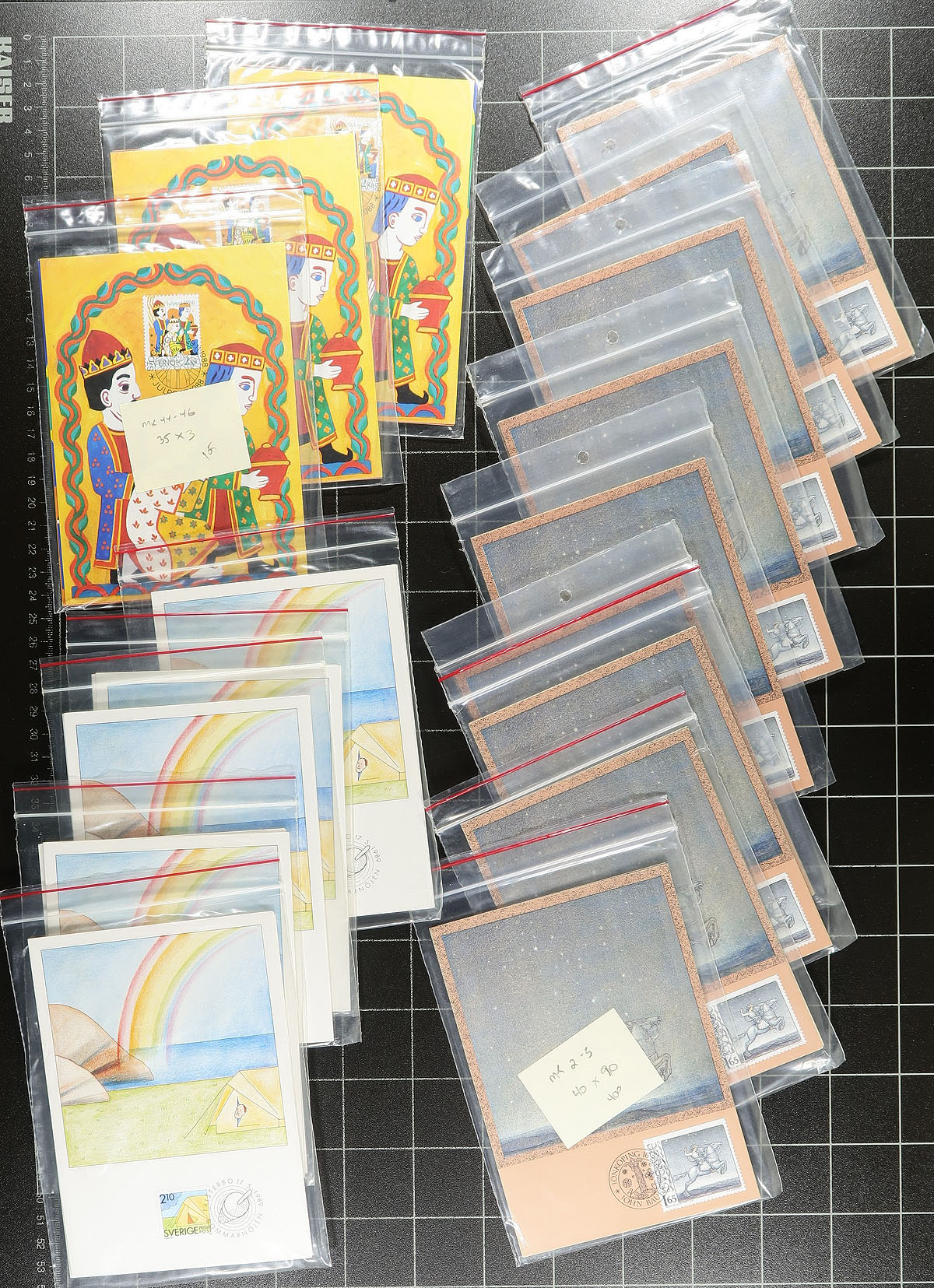 Scandinavia. Accumulation of Scandinavia covers and cards loose in a box, 1960's-1980's, containing many hundreds of items, with representation from Sweden, and a smaller selection of Finland, noting first day covers, postal stationery (primarily unused), maximum cards, and presentation booklets. A nice variety of material noting singles and sets frankings, noting many topical and thematic subjects. Clean and very fine. Estimate =