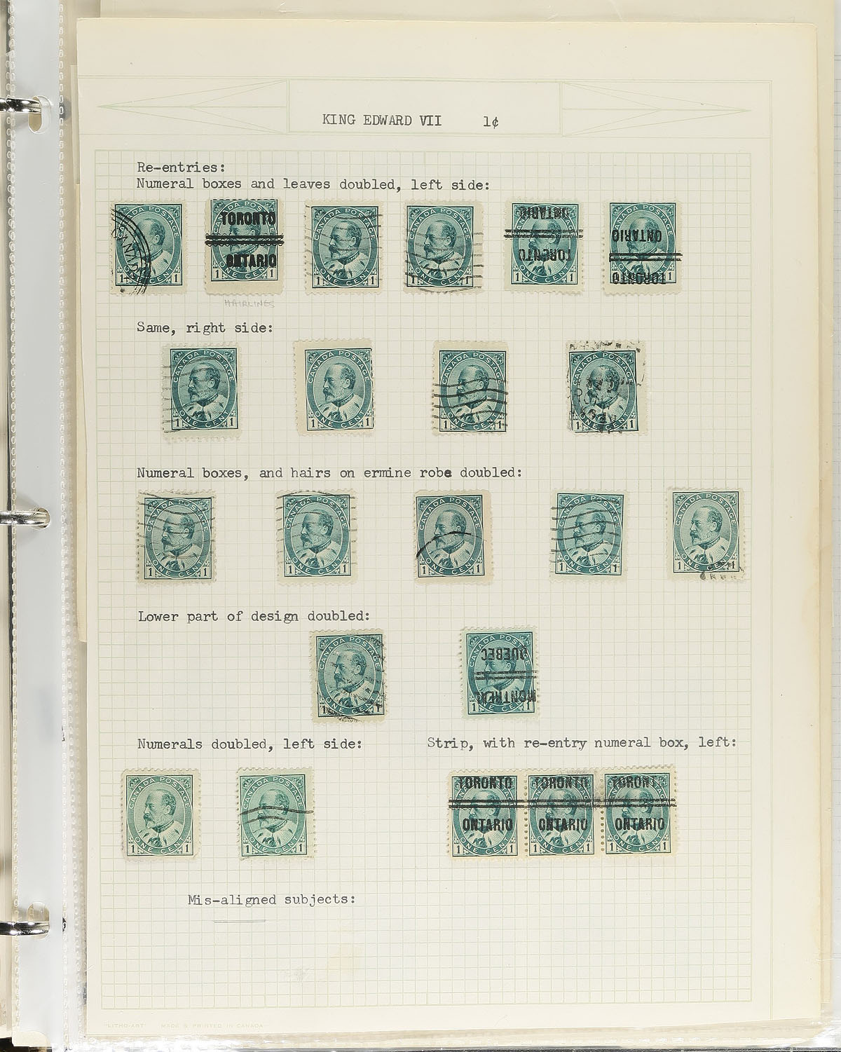 Nice collection of primarily used Canada, 1850's-1985, containing roughly 1,500 stamps neatly organized in two Minkus albums. The collection generally ranges from Scott #14/1074, really beginning with 20 Small Queens (10c x3, 20c and 50c Widow Weeds), partial sets of Leaf and Numerals, with complete sets of Edwards, Quebecs, Admirals, Scrolls, right up to the Peace issues. The collection also includes back of the book issues, coils, booklet panes, souvenir sheets, precancels, printing varieties, a few covers (noting B.C. postmarks), and more. Postmark interesting includes CDS and other types, including many "socked on the nose" town cancels. We note a few faults with some of the early stamps, still a nice collection with a few better cataloguing stamps, overall fine to very fine. Estimate =