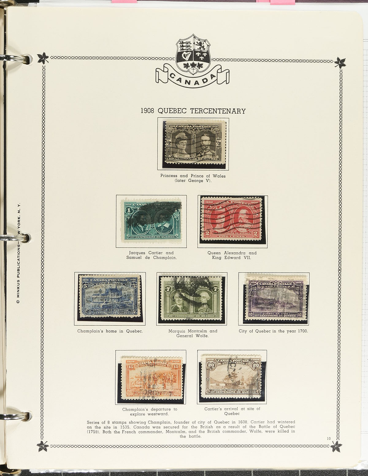 Nice collection of primarily used Canada, 1850's-1985, containing roughly 1,500 stamps neatly organized in two Minkus albums. The collection generally ranges from Scott #14/1074, really beginning with 20 Small Queens (10c x3, 20c and 50c Widow Weeds), partial sets of Leaf and Numerals, with complete sets of Edwards, Quebecs, Admirals, Scrolls, right up to the Peace issues. The collection also includes back of the book issues, coils, booklet panes, souvenir sheets, precancels, printing varieties, a few covers (noting B.C. postmarks), and more. Postmark interesting includes CDS and other types, including many "socked on the nose" town cancels. We note a few faults with some of the early stamps, still a nice collection with a few better cataloguing stamps, overall fine to very fine. Estimate =