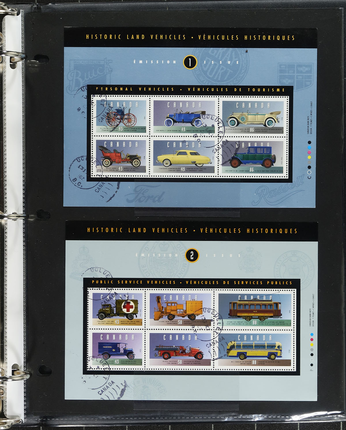 Large accumulation of used Canada, 1950's-2005, containing roughly 20,000 stamps in a variety of formats including a thick stockbook, several manila or Vario-style pages in 3 binders, loose pages, and a few hundred glassines. Despite the large size, this is a very well organized lot using Scott numbers, noting many high denominations, a few souvenir sheets, and more. A spot check indicated a wide variety of postmarks including CDS, MOON, POCON, and probably other types, including several "socked on the nose" town cancels. A great lot for the postmark hunter, and a potentially high cataloguing lot, overall fine to very fine. Estimate =