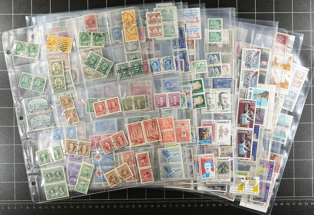 Accumulation of several thousands of Canada used, in a variety of formats, including stock pages, baggies, and more. A very quick check indicated primarily stamps ranging from the 1900's to modern, with several hundreds from the 1930's to the 1950's (in one large bag appearing to be dedicated to these issues). Completely unchecked for varieties and better postmarks, although we did spot cds, split ring, POCON, including many "socked on the nose" town cancels. A nice lot for the postmark hunter, overall fine to very fine. Estimate =