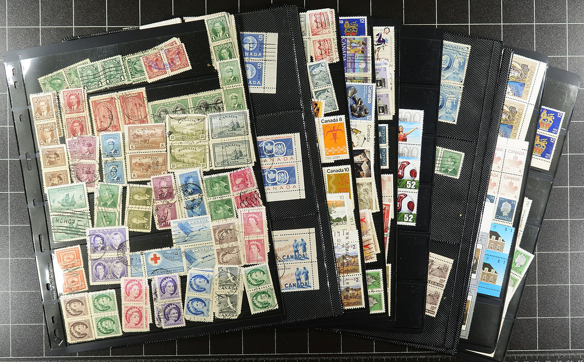 Accumulation of several thousands of Canada used, in a variety of formats, including stock pages, baggies, and more. A very quick check indicated primarily stamps ranging from the 1900's to modern, with several hundreds from the 1930's to the 1950's (in one large bag appearing to be dedicated to these issues). Completely unchecked for varieties and better postmarks, although we did spot cds, split ring, POCON, including many "socked on the nose" town cancels. A nice lot for the postmark hunter, overall fine to very fine. Estimate =