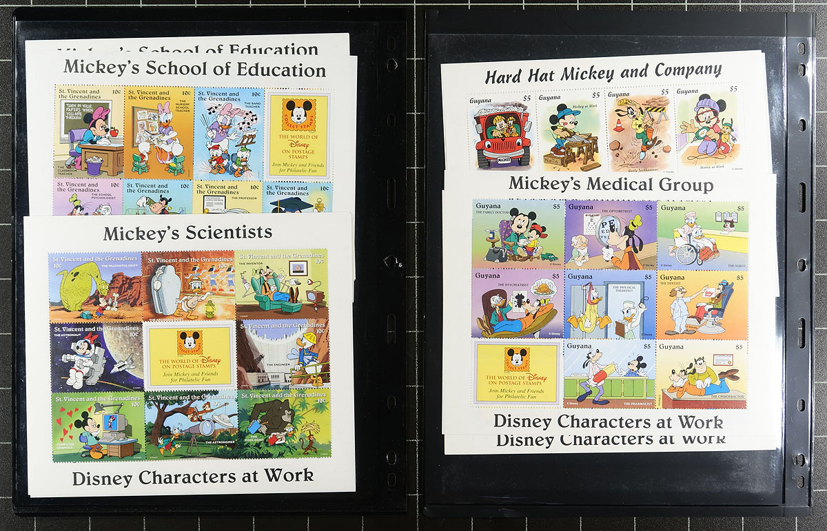 Lovely never hinged topical collection / accumulation of Disney sets and souvenir sheets in several stock pages, generally from the 1980's to the 1990's, primarily from Grenada and Grenada Grenadines, along with a few other countries. The lot includes roughly 185 souvenir sheets, and a few sets with owner's older Scott catalogue value for the lot totalling over $1,500. Duplication can range from 1 to 9 for some sheets, making this a nice lot for the topical or thematic collector, and dealers looking for stock, overall very fine. Estimate =