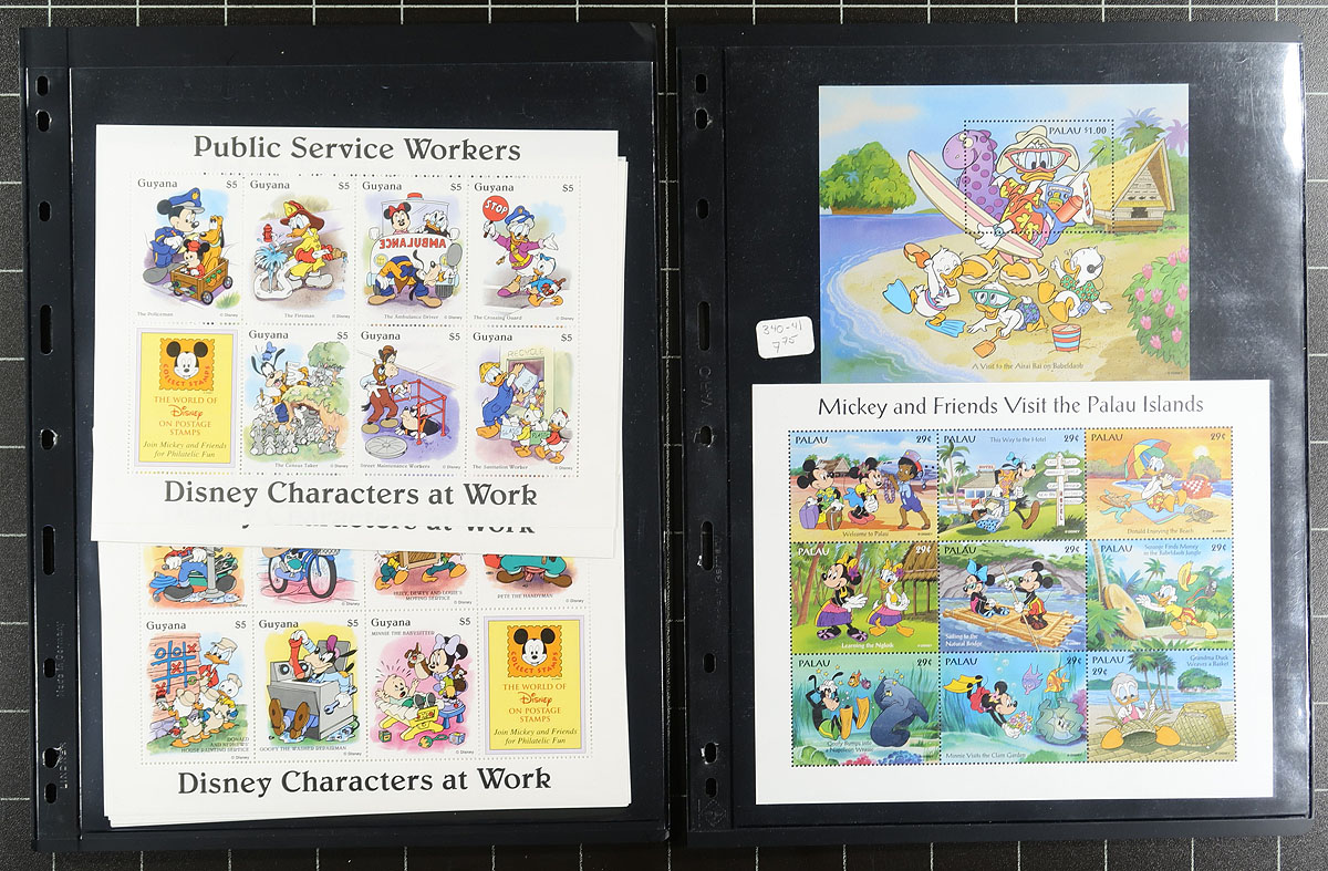 Lovely never hinged topical collection / accumulation of Disney sets and souvenir sheets in several stock pages, generally from the 1980's to the 1990's, primarily from Grenada and Grenada Grenadines, along with a few other countries. The lot includes roughly 185 souvenir sheets, and a few sets with owner's older Scott catalogue value for the lot totalling over $1,500. Duplication can range from 1 to 9 for some sheets, making this a nice lot for the topical or thematic collector, and dealers looking for stock, overall very fine. Estimate =