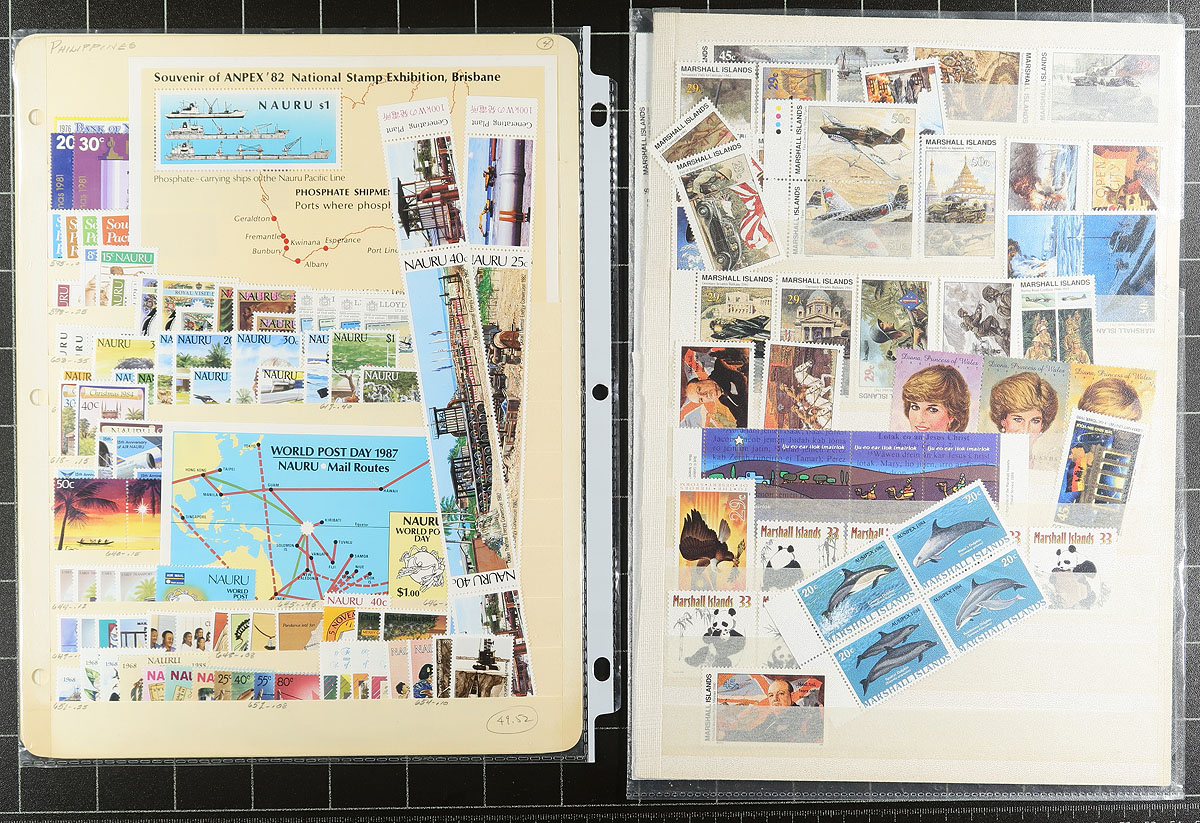 Group of primarily never hinged worldwide stamps, 1910's-1990's, containing many hundreds of stamps in several stock pages. We note better representation from European countries and the Pacific area, including singles, sets, and some souvenir sheets. Owner's 2017 Scott catalogue value for the lot totals US$877.00 ($1183.95 CDN). A nice lot for the worldwide collector or dealer looking for stock, overall very fine. Estimate =