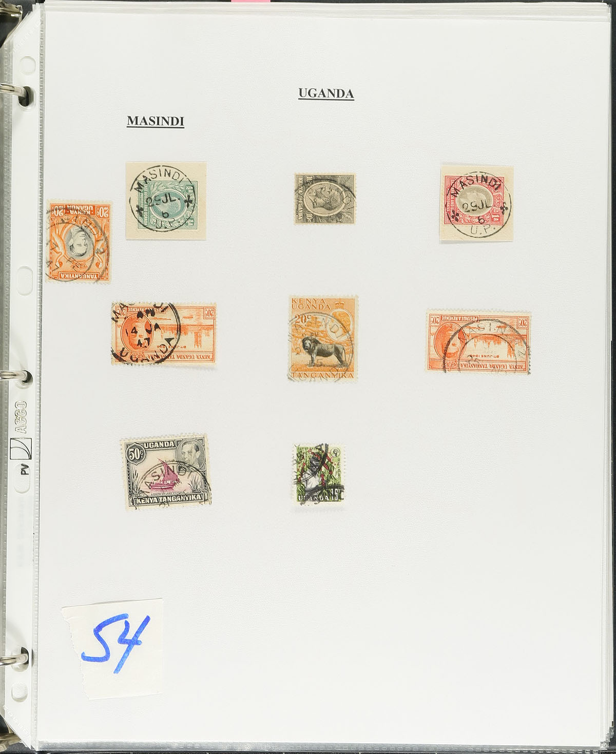 Collections of British Africa collected for town postmarks, 1900's-1990's, containing many hundreds of stamps (mostly on piece), and over 100 covers on many homemade pages housed in 4 binders. We note roughly 100 different towns represented from Swaziland (ranging from B-T), Basutoland / Lesotho (A-T), Uganda (A-U), and Kenya (N-Y, most notably from Nairobi), with each town represented with at least one stamp or cover. Just a few of the towns encountered include Nhlangand, Tshaneni, Lebihan Falls, Quthing, and much more. The collections also include several pages with cancel information and many illustrations of town cancel types, maps, and more. A nice lot for the postmark collector and should be continued and perhaps exhibited. Online photos show a sampling. Estimate =