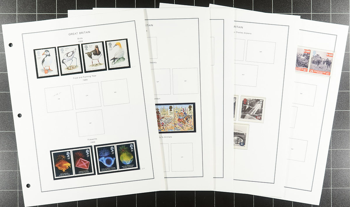Collection of never hinged Great Britain, 1971-1990's, containing roughly 700 stamps in several album pages, presentation packs, and in glassines. The bulk of the lot is the collection in hingeless computer generated album pages, ranging from Scott #648/1566. The lot also contains 15 presentation packs from the 1980's-1990's, and singles and blocks in glassines. Face value of the lot is roughly £185.00. A nice clean lot for all collectors, or for postage users. Estimate =