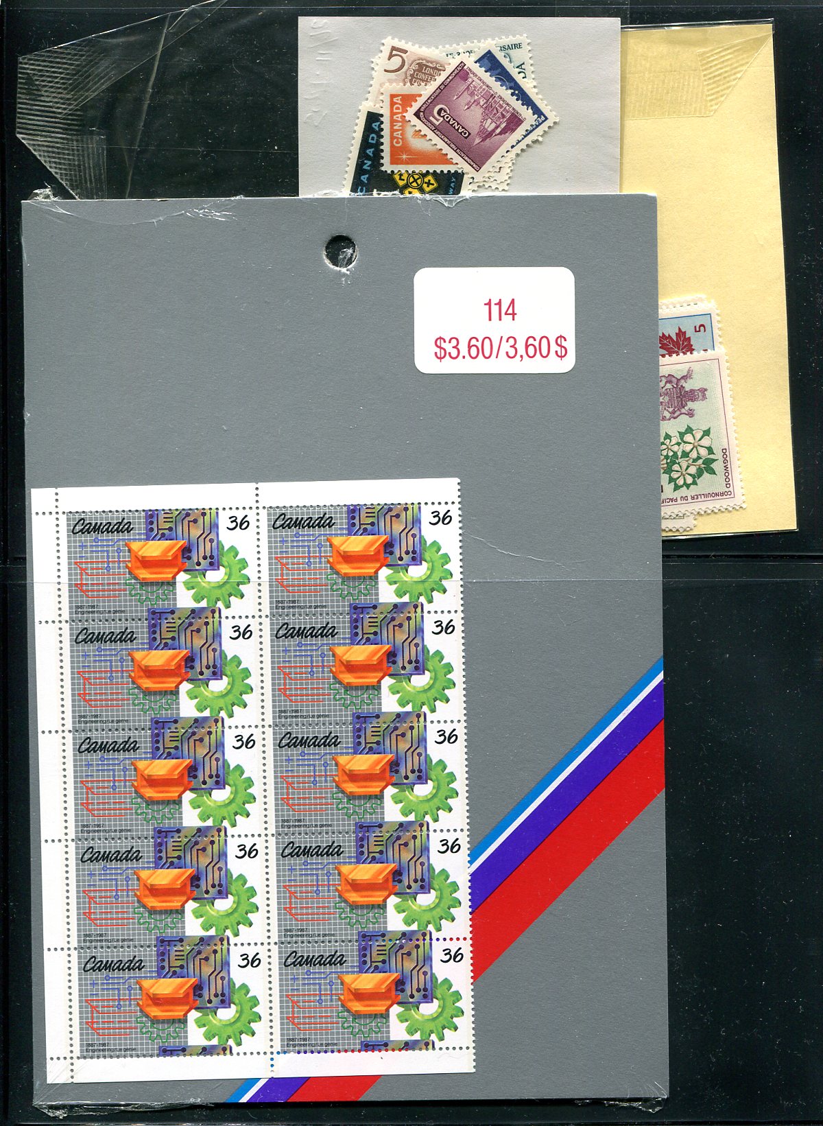 Pre-Packaged Stamps. Very rare group of Canada Post produced and recently Unitrade listed "Pre-Packaged Stamps" marketed by the Post Office in the late 1960's and early 1970's. The group consists of 10 listed types, identifiable in Unitrade. These are complimented by a very unusual 1987 Engineering mint block of 10, in Post Office sealed packaging (first we have seen of this). The cellophane packaging is also very fragile and usually found in damaged condition. These packs are all still in all sealed, with a couple having some pencil notation put on by the previous owner. These "prototype" stamp packs are much rarer than any thematic collection, quarterly pack or annual collection. Estimate =