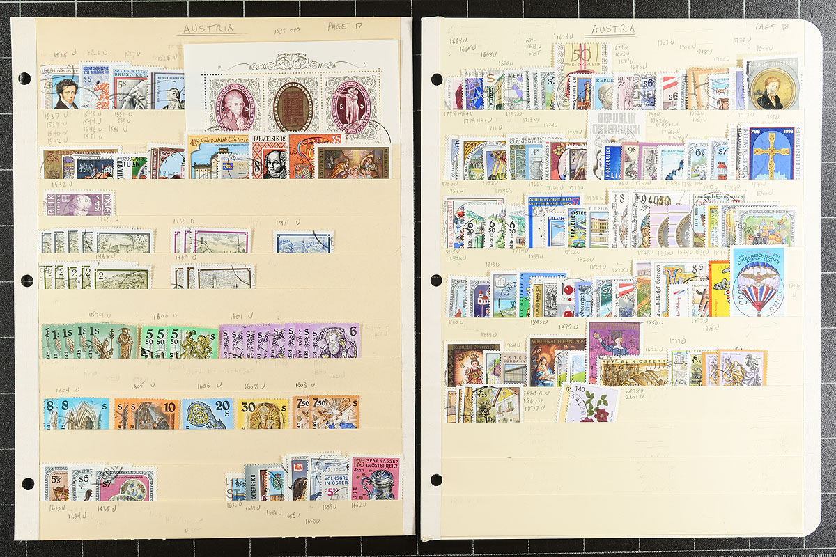 Collector's duplicated and well-organized holding of 1,341 stamps neatly arranged on stockpages within a binder. Ranging from 1860's to early 2000's, looking to be about 90% used with lots of postmark interest at every corner. Also included are a couple of souvenir sheets, a postcard and a stamp exhibition label (the latter not counted). Owner's 2021 Scott US$1,140.40 =