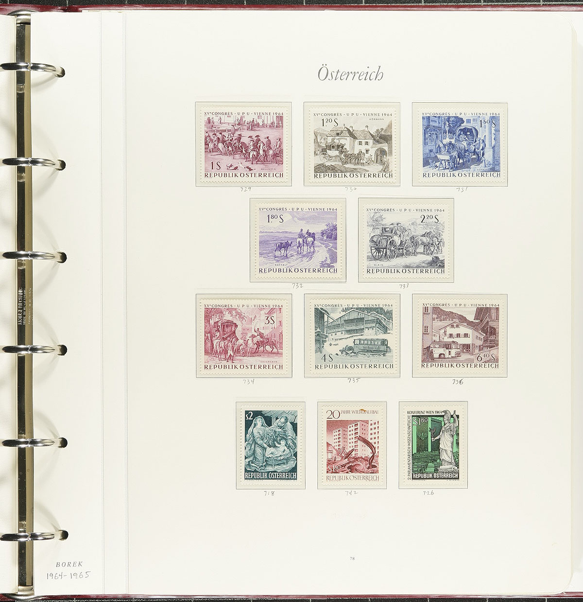 A mostly mint (and mostly Never Hinged) collection of 730 stamps and souvenir sheets, neatly arranged within 2 deluxe "BOREK" brand hingeless albums. The first album runs from 1964-1976 and the second album runs 1978-1990, then 1992-1993. Very clean material, in two premium albums. Owner's 2021 Scott US$414.15 =