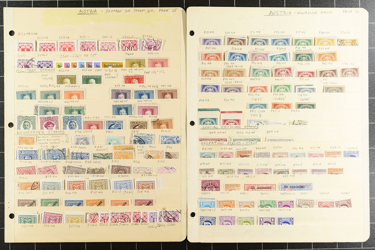"Back of the Book" accumulation of stamps, all being Semi Postals, Airmails, Postage Due, Military, Newspaper, Occupation, Special Handling and Offices Abroad. Noted #C54-C60 used set (cat $258.20 alone). Includes both mint and used (expect the mint to be hinged), all neatly arranged on stockpages / album pages with owner's inventory. Owner's 2021 Scott US$1242.40 =