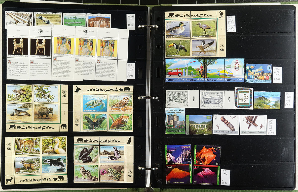 A holding of UN, including mint and used stamps on Vario stockpages, commemorative covers, an "Abria"hingless album and an empty 1967 Harris album to "expand". Issues start in the 1950's and are hit and miss a bit running into the 1980's. The owner has tabulated that there are 893 stamps, with a catalogue value of US$550.10 ($742.65 CDN). Estimate =