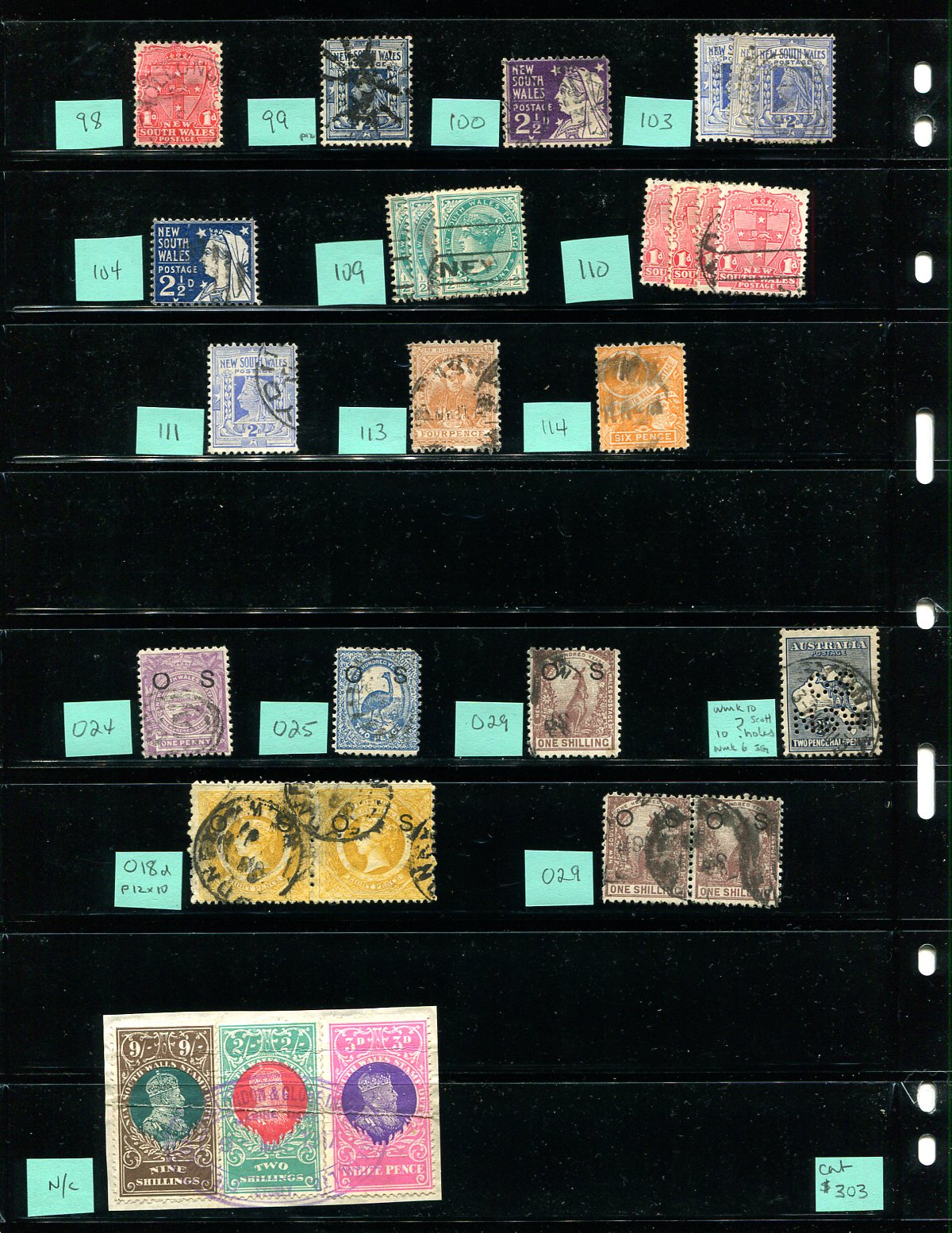 A quality used selection from all six Australian States, being an excellent "foot in the door" starter group, or study assembly for someone looking to search for varieties. A total of 172 stamps, neatly arranged and identified on Vario stockpages. While the owner has not cataloged the stamps clearly faulty, expect the of small fault (short perfs, etc). Owner's 2021 Scott US$1,070.00 =