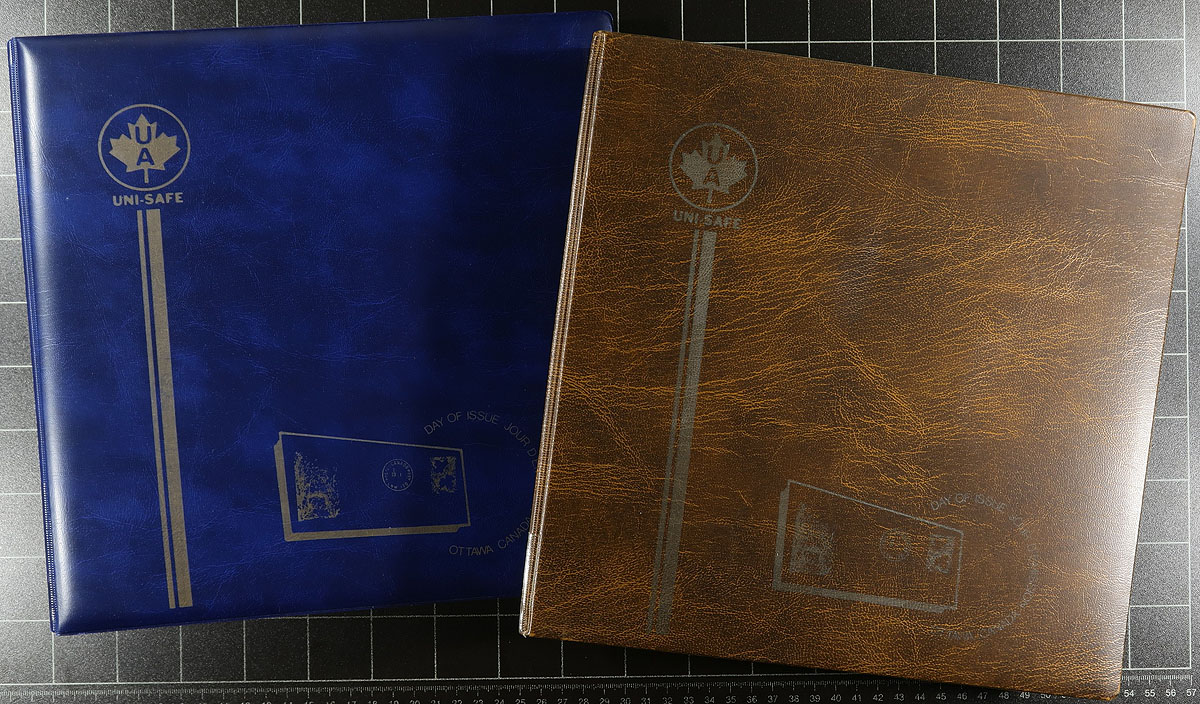 A bankers box, filled with 10x Unisafe brand FDC albums, all lightly used with padded covers and black pages. Each of these albums will hold 100 covers (up to and including the size of a modern Canadian FDC). Retail cost of these is usually in the $20-30 each range! A nice chance to find a home for 1000 items here! Estimate =