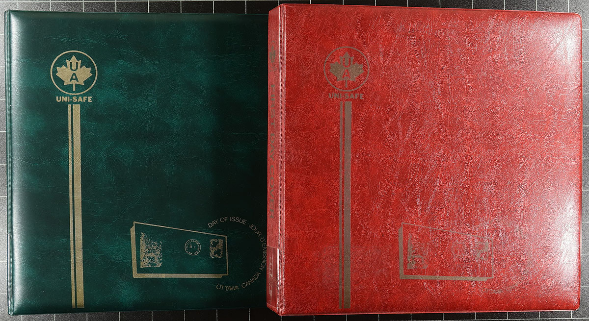 A bankers box, filled with 10x Unisafe brand FDC albums, all lightly used with padded covers and black pages. Each of these albums will hold 100 covers (up to and including the size of a modern Canadian FDC). Retail cost of these is usually in the $20-30 each range! A nice chance to find a home for 1000 items here! Estimate =