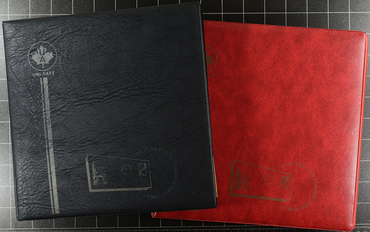 A bankers box, filled with 10x Unisafe brand FDC albums, all lightly used with padded covers and black pages. Each of these albums will hold 100 covers (up to and including the size of a modern Canadian FDC). Retail cost of these is usually in the $20-30 each range! A nice chance to find a home for 1000 items here! Estimate =