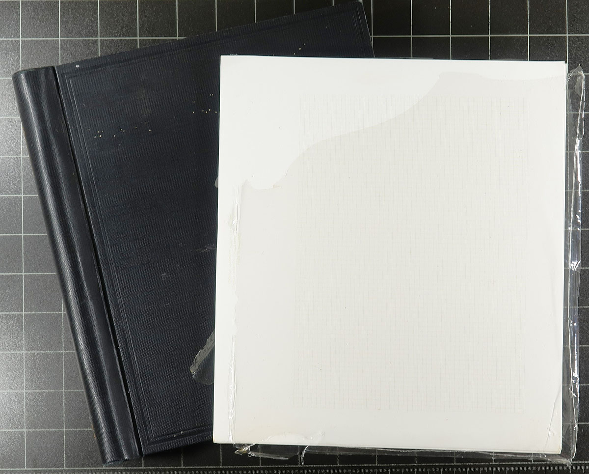 Estate Balance Lot. A bankers boxed, stuffed with reasonably used philatelic supplies, wrapping up the balance of an estate. Included (in no particular order) is 1) Stanley Gibbons "Utile" springback album (black) filled with unused quadrille pages. 2) Partial pack (about 50 pages) of Stanley Gibbons quadrille pages for springback album. 3) Five small mint block "Handifiles". 4) Lighthouse brand 3-ring binder (with matching slipcase) in green. 5) Unisafe brand "Plate Block Album" in red (with matching slipcase). 6) Small red "102" box, filled with as-new "102" cards. 7) Two "Universal" brand block albums (filled with Vario type pages, 4-pocket). 8) A couple stockbooks, one small, one 16-page Unisafe (black pages). 9) A binder filled with a few dozen Vario and manila stockshets. 10) A couple packages of unused glassines and a colour guide. A very useful offering. Estimate =