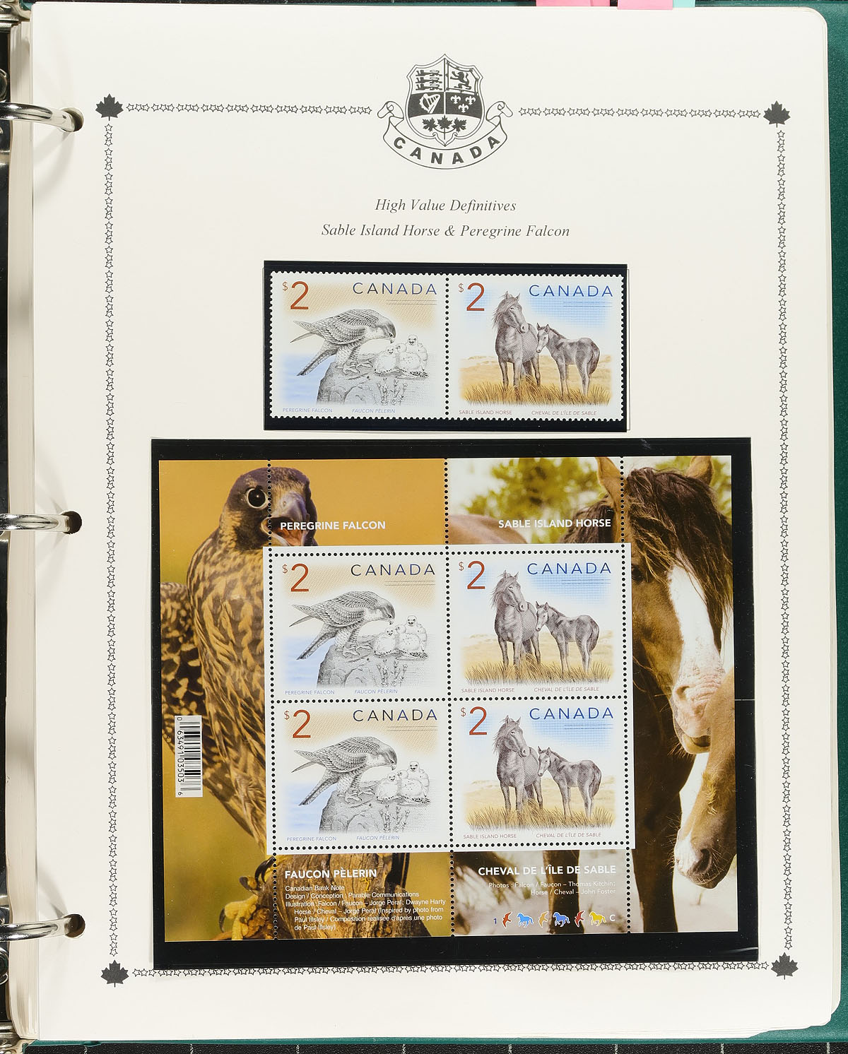 Lovely never hinged Canada collection, 2004-2008, containing many hundreds of stamps in hingeless album pages housed in a Minkus binder. The collection ranges from Unitrade #2072/2295, containing singles, sets, booklets, souvenir sheets, coils, die cuts, "P" stamps, etc., with the collection nearly complete from this transitional period. Some of the material will catalogue $10 and up each, face value alone at the time of counting was $376.00 (will be a touch higher currently as P stamps are now $1.24 each). A very clean lot for collectors, dealers, and postage users. Our online photos show a sampling. Estimate =
